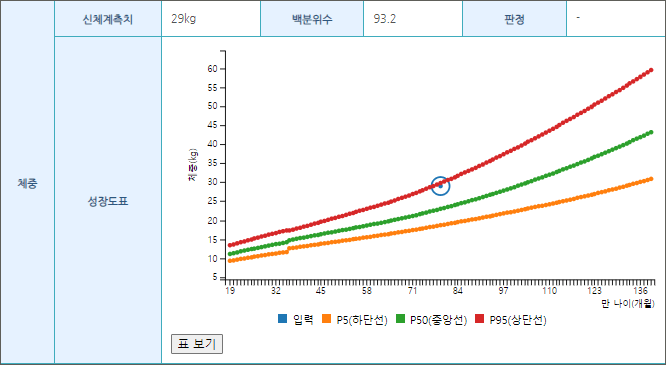 신장별 체중 백분위수, 연령별 체중 백분위수, 연령별 체질량지수 등의 정보를 확인하실 수 있으니 좀 더 자세한 자료는 아래 첨부된 파일을 통해 확인하실 수 있습니다.