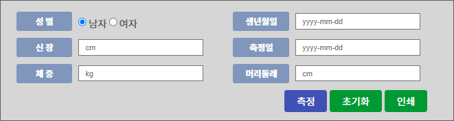 질병청 홈페이지에서 아이의 생년월일, 신장, 체중, 측정일, 머리둘레, 성별 정보를 입력하시면 됩니다.